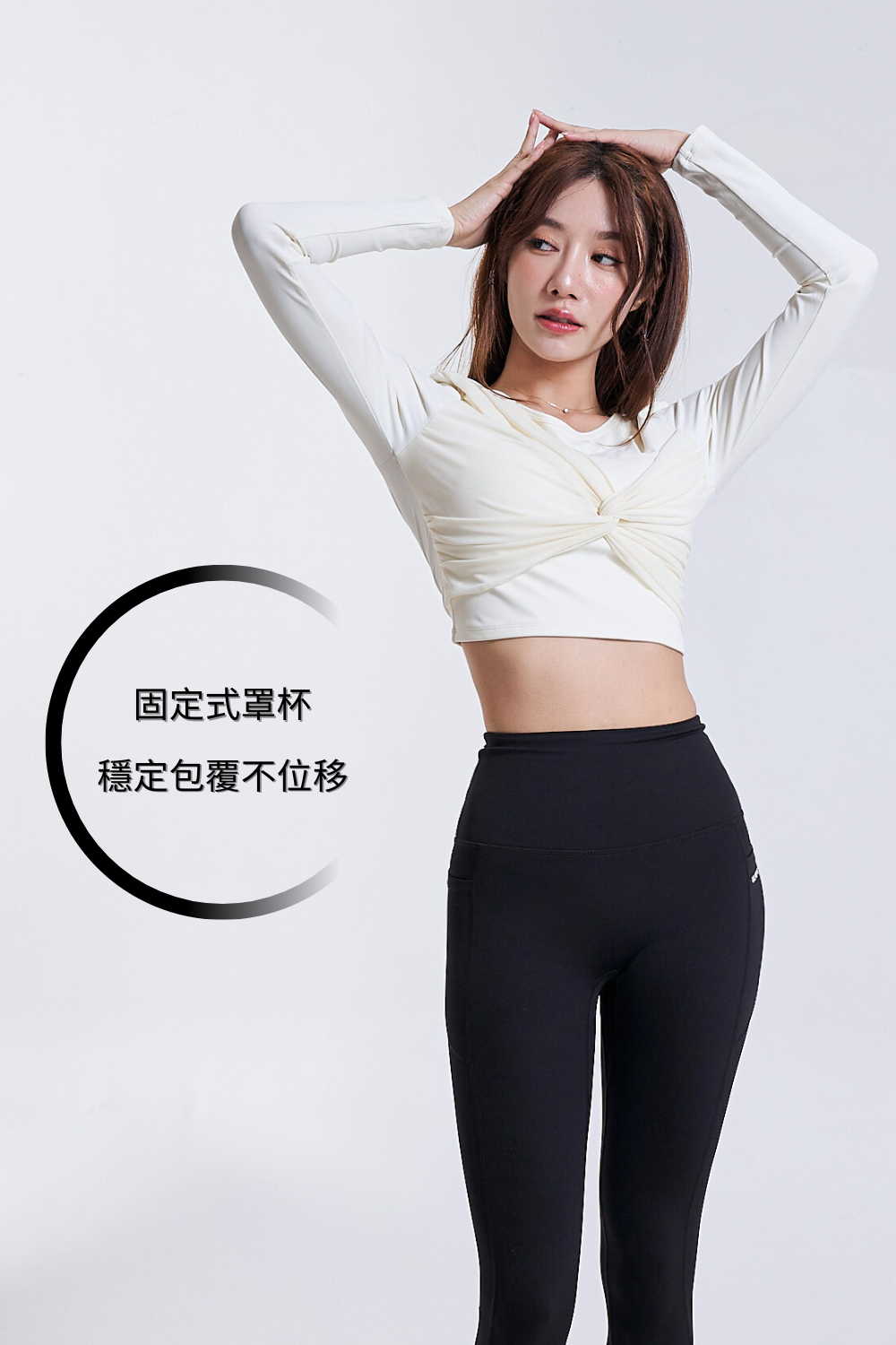 • 一體成型、上薄下厚固定式罩杯,穩定包覆不易位移,運動時也能更自在安心。