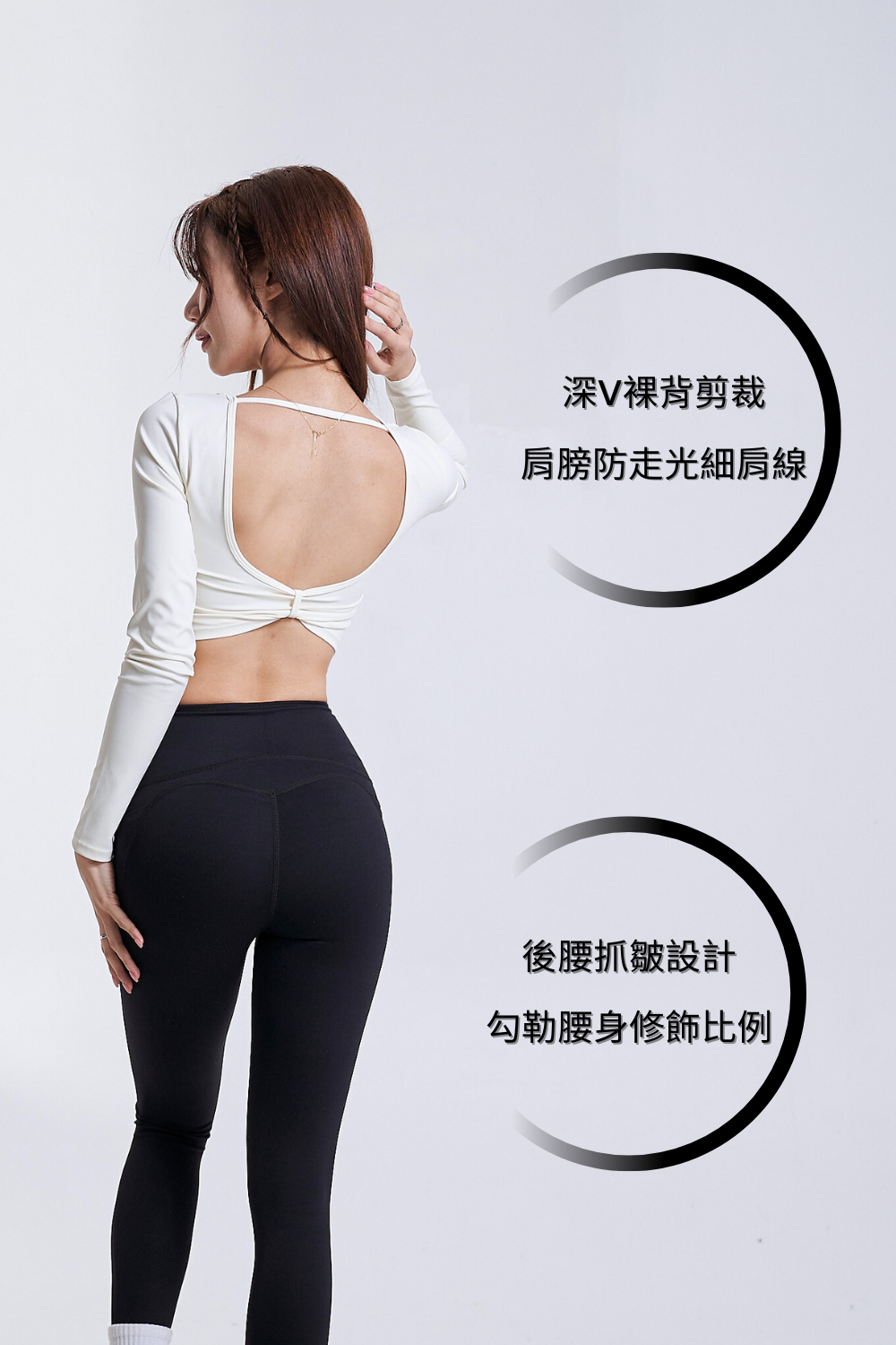 • 背後深V裸背剪裁,肌膚自由呼吸,搭配肩膀防走光細肩線,運動不滑落,自信展現美背輪廓。