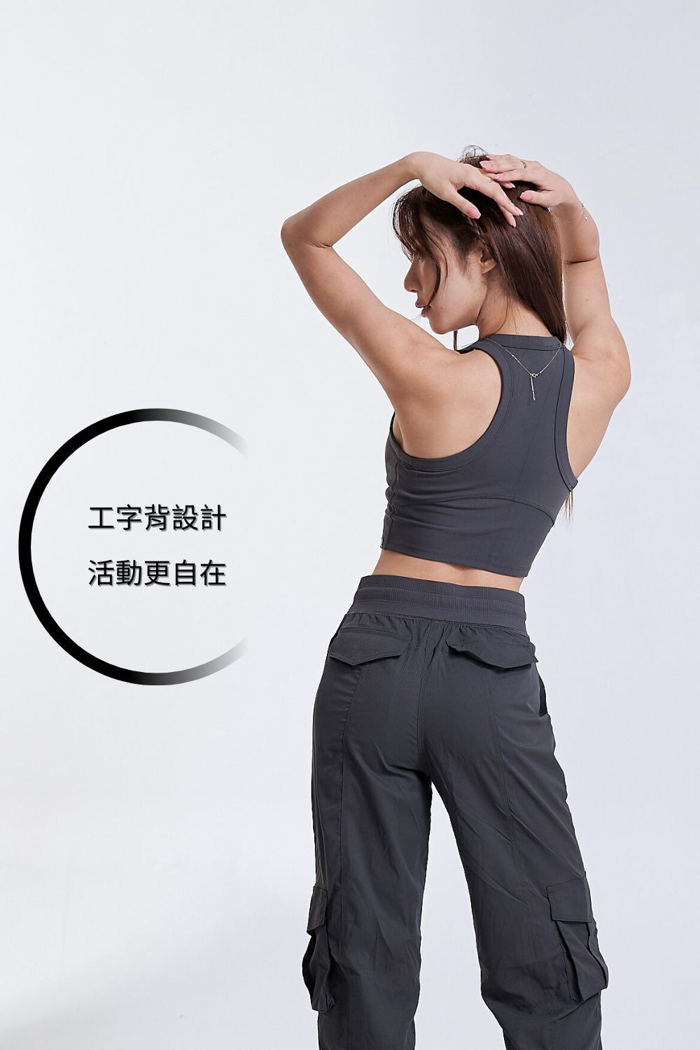 • 工字美背設計,均衡背部受力、肩背訓練不卡手,運動時自在舒展更安心。