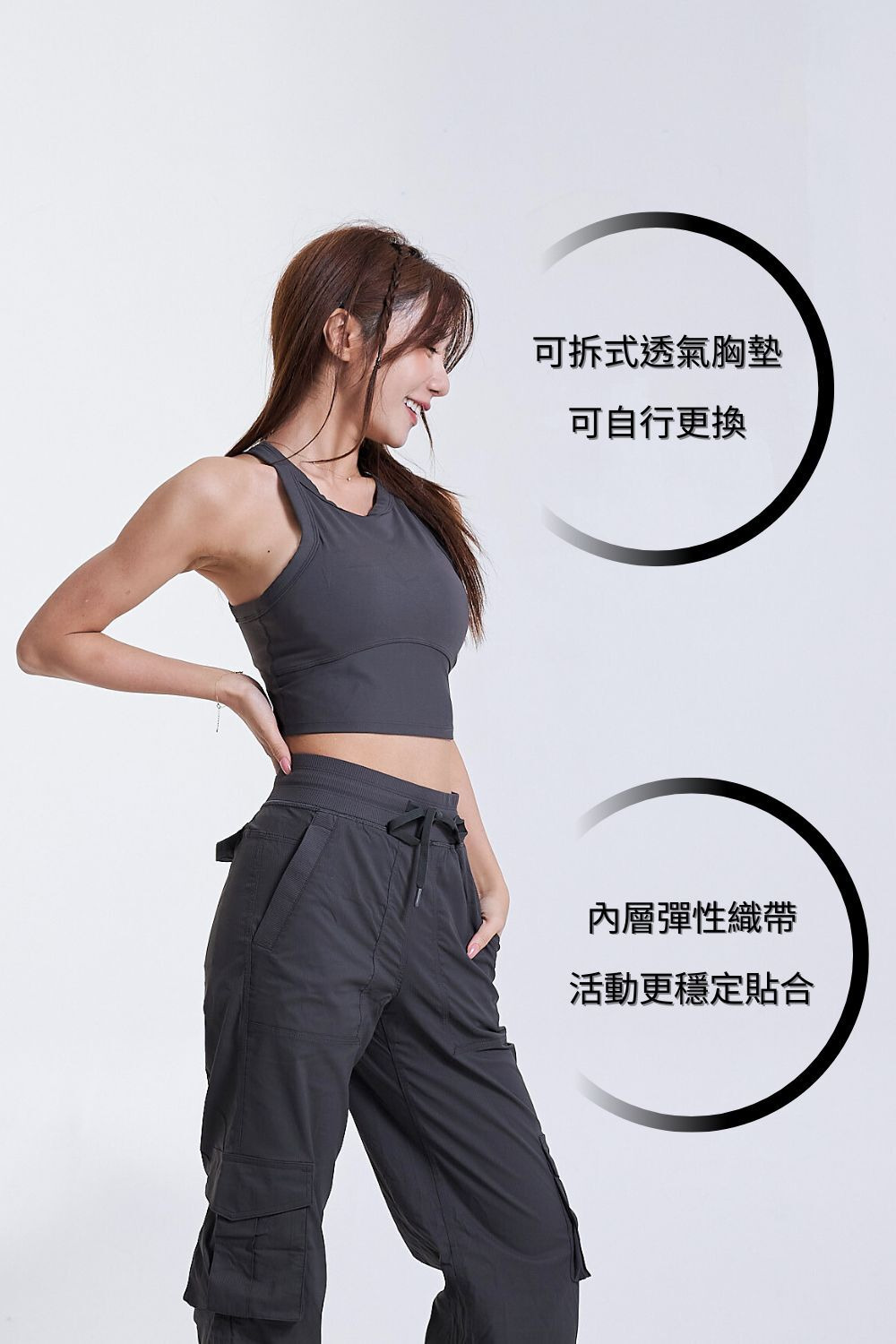 • 高彈輕薄運動布料,服貼包覆卻不緊繃,滑順親膚、延展性佳,舒適度與機能兼具。