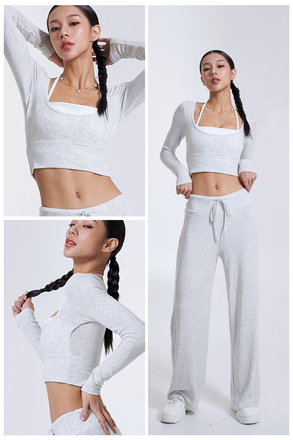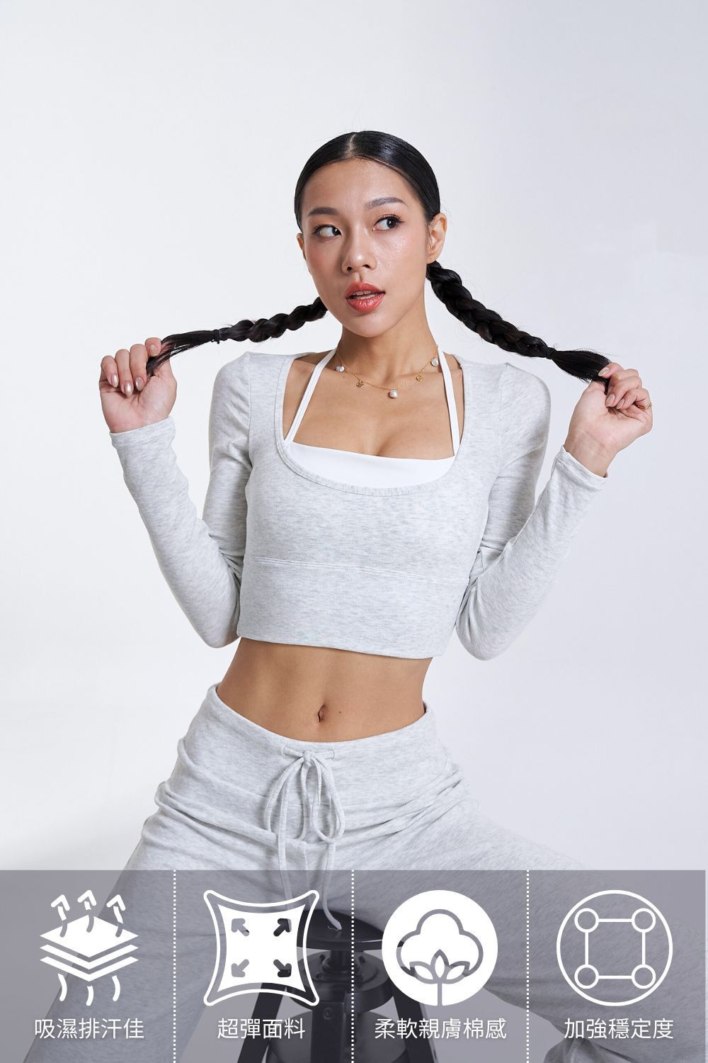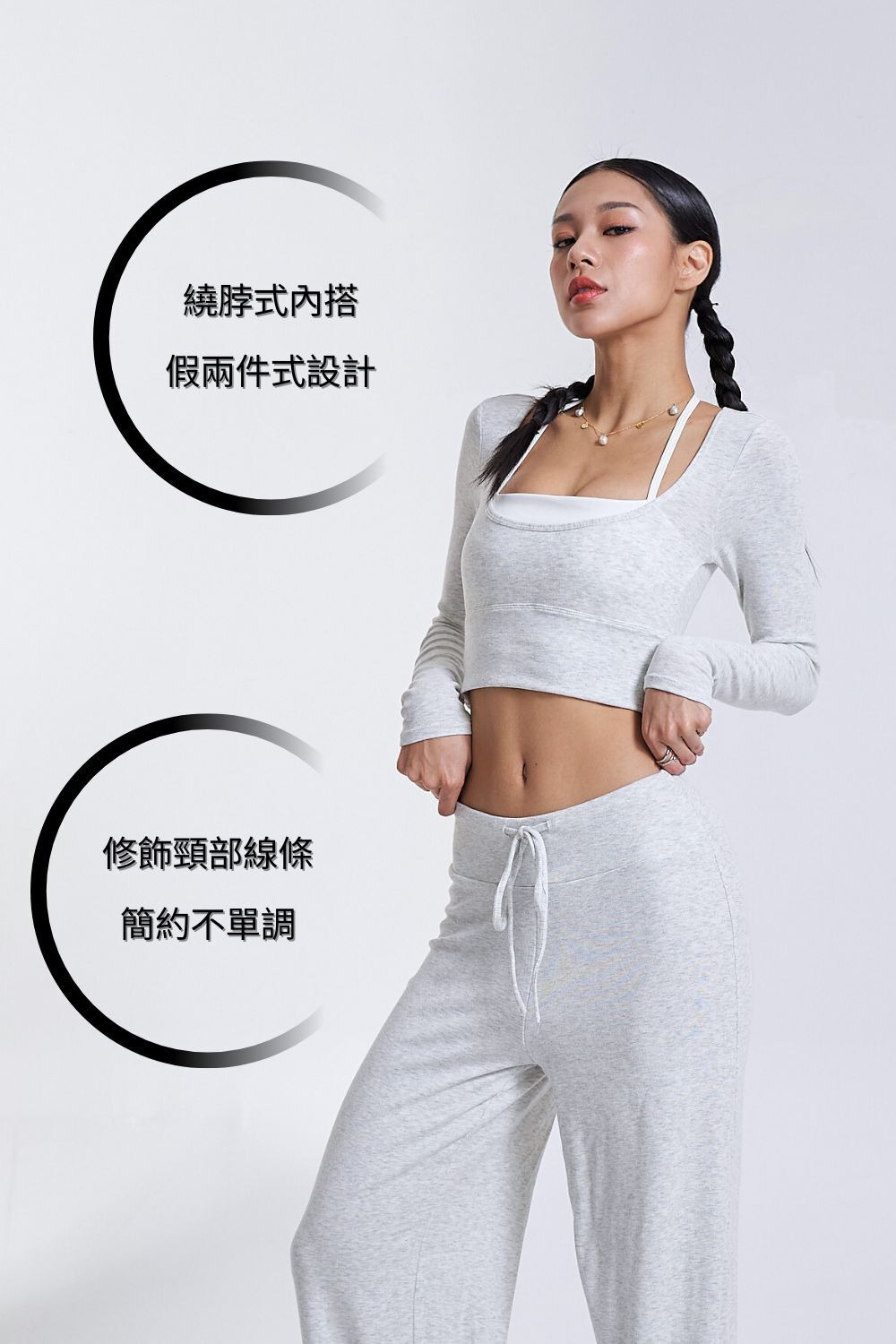 假兩件繞脖棉感長袖Bratop|淺麻灰