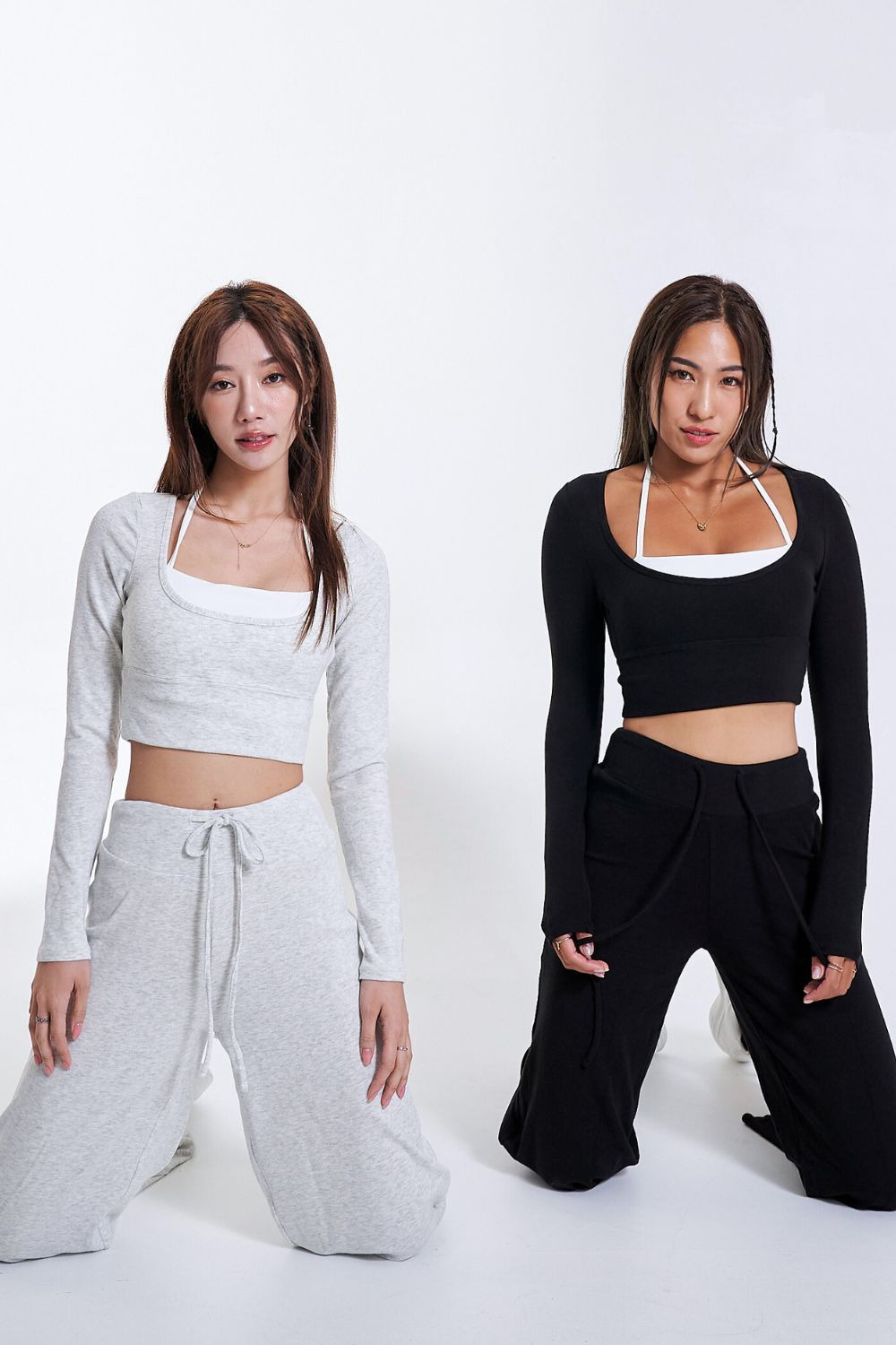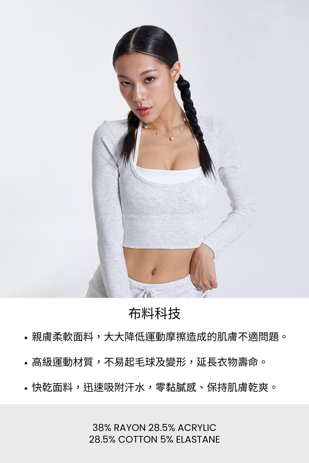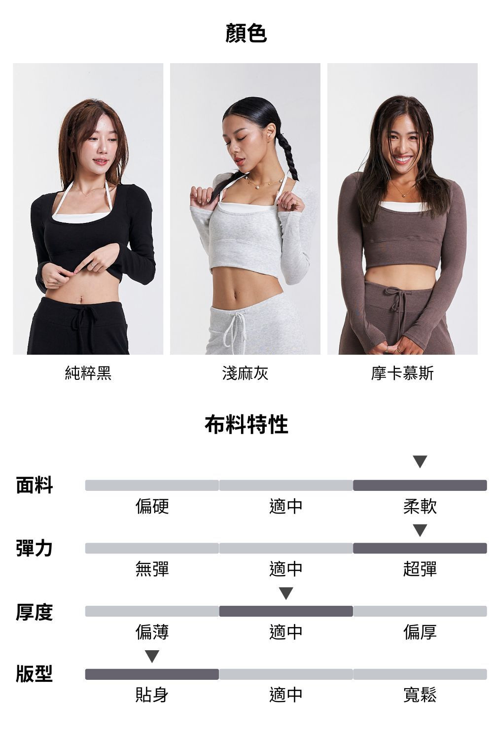 • 繞脖式內搭與外層長袖一體成型,假兩件式設計,簡單一件就能穿出層次感與小性感。