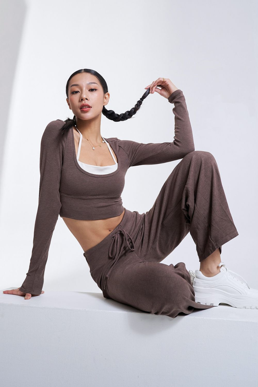 假兩件繞脖棉感長袖Bratop|摩卡慕斯