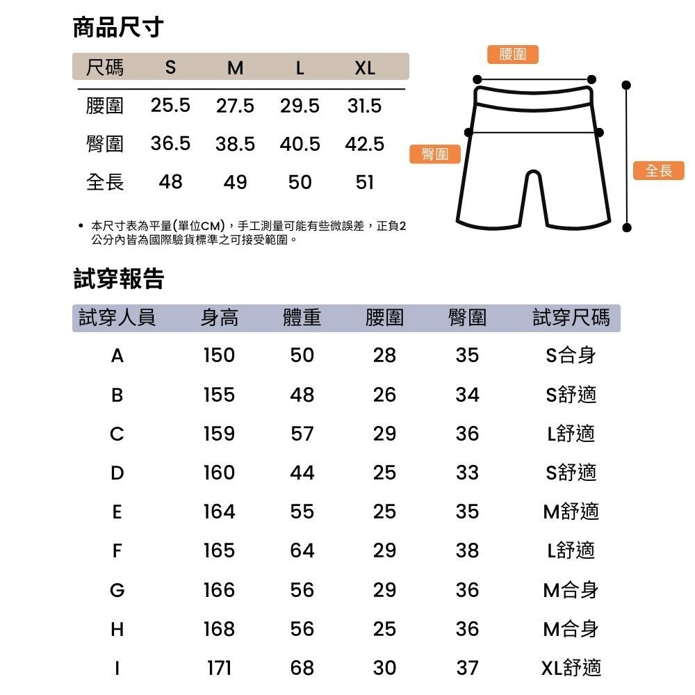 • 四至五分褲長度,剛好的膝上位置,不捲邊、防止大腿內側摩擦。