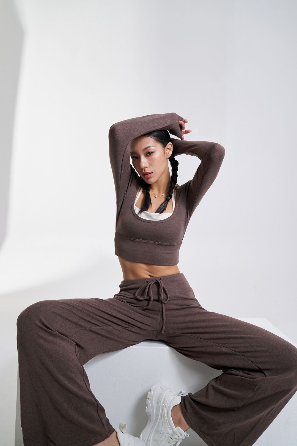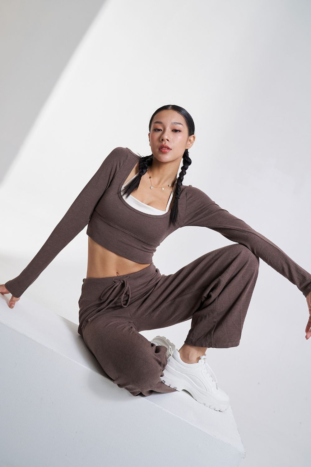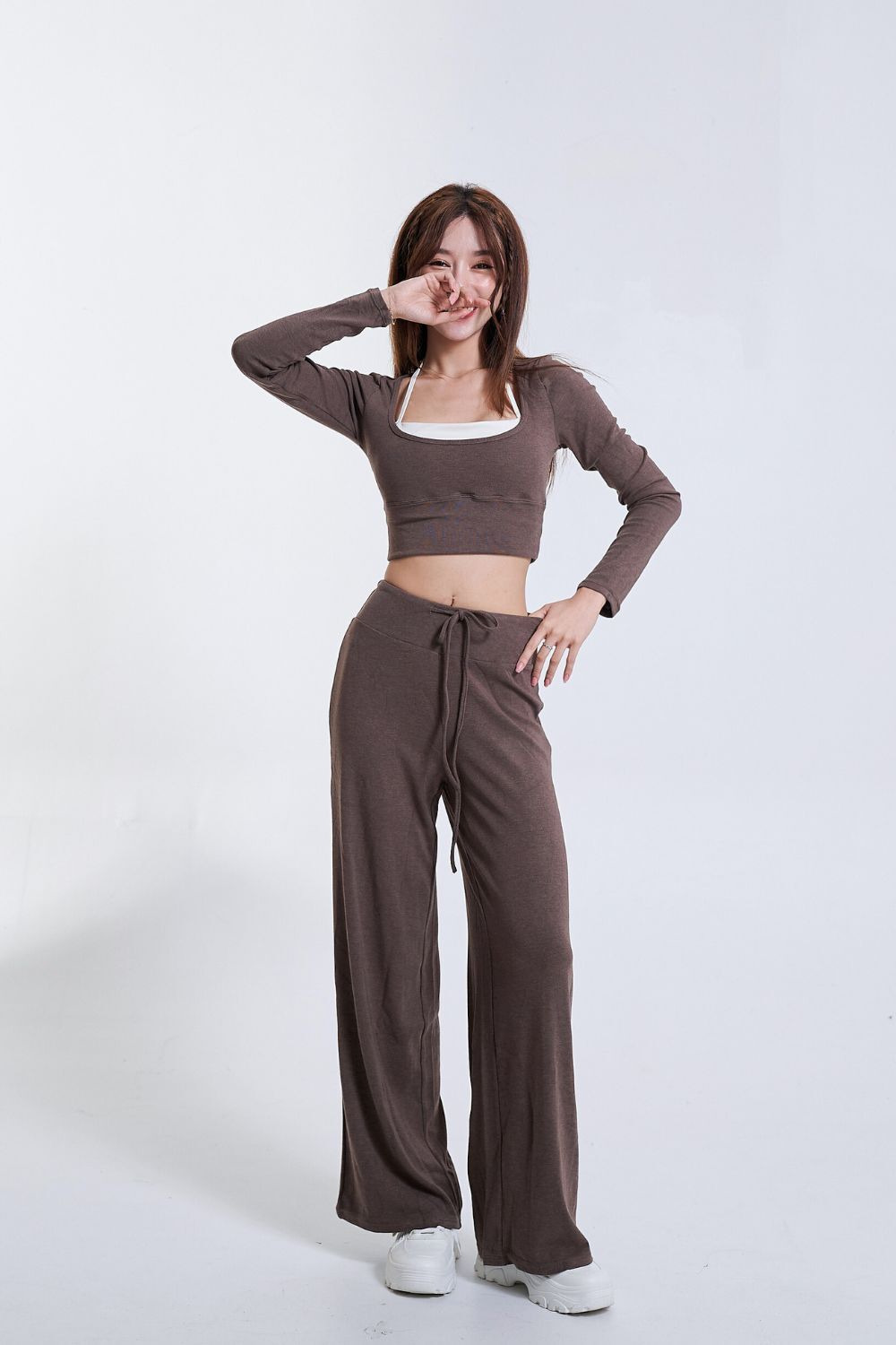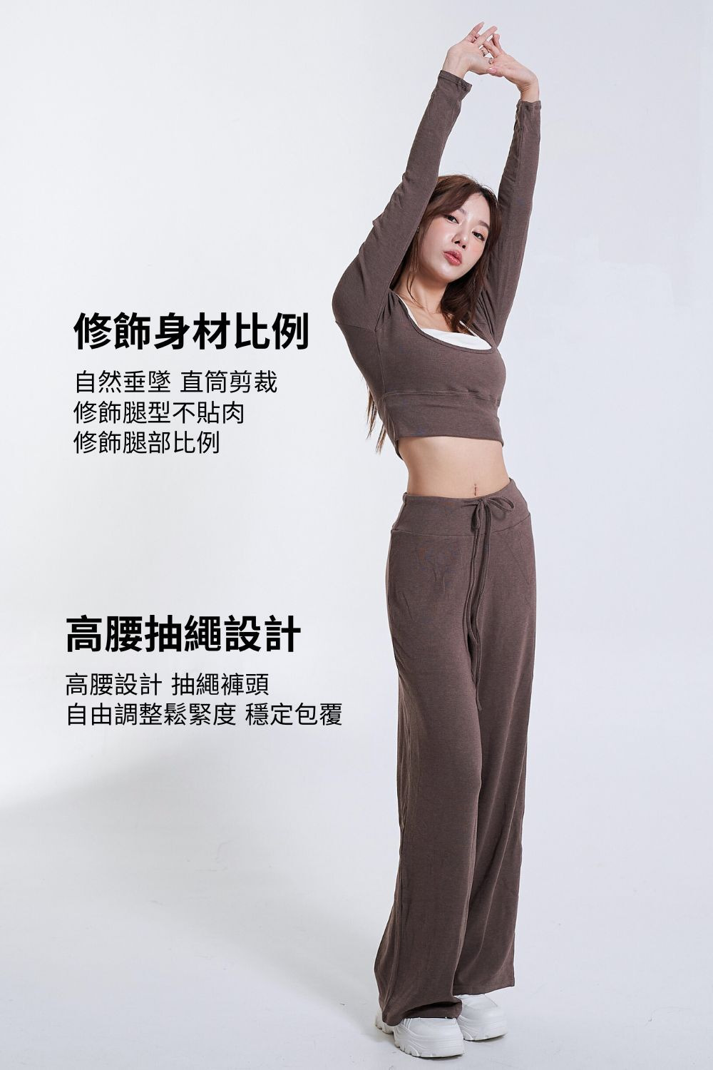 垂墜棉感抽繩直筒褲|摩卡慕斯