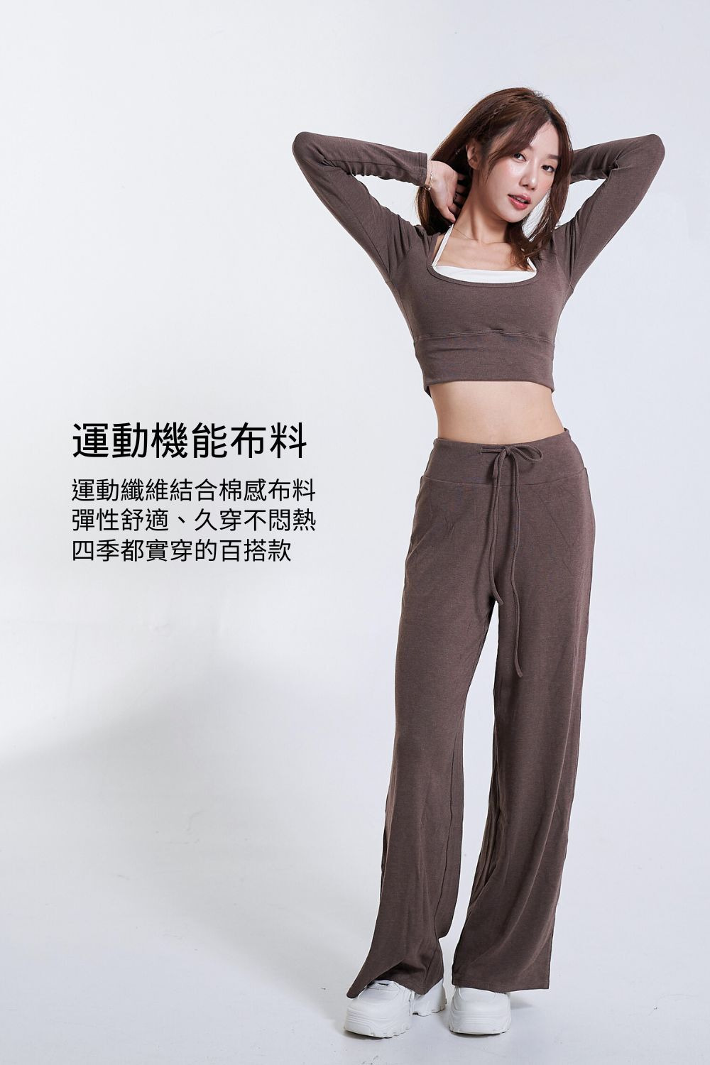 • 彈性運動纖維結合棉感布料,彈性剛剛好、觸感舒服,不悶熱,是一年四季都實穿的百搭款。