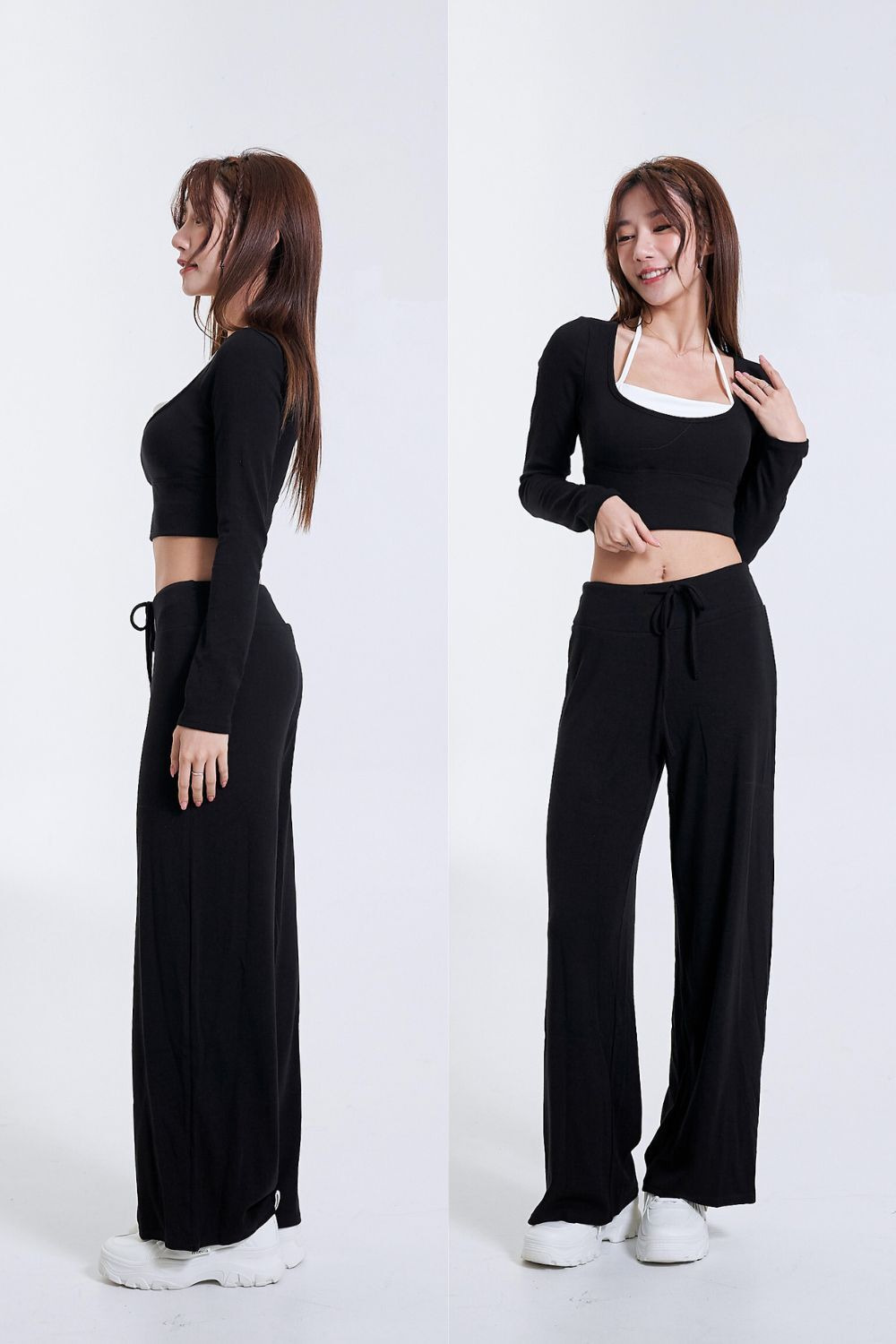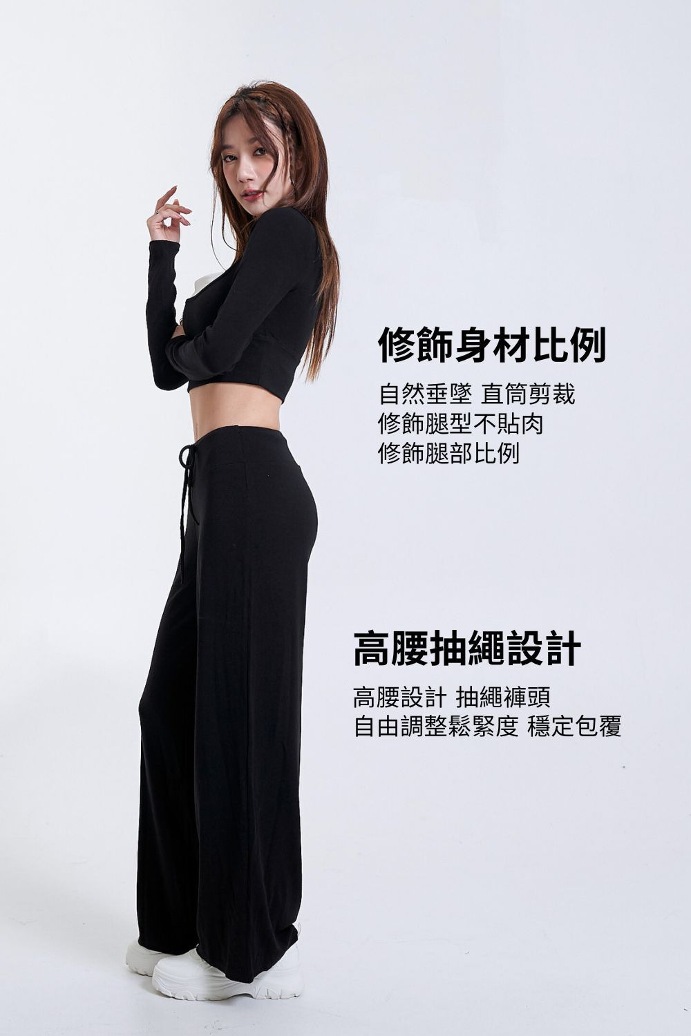 垂墜棉感抽繩直筒褲|純粹黑