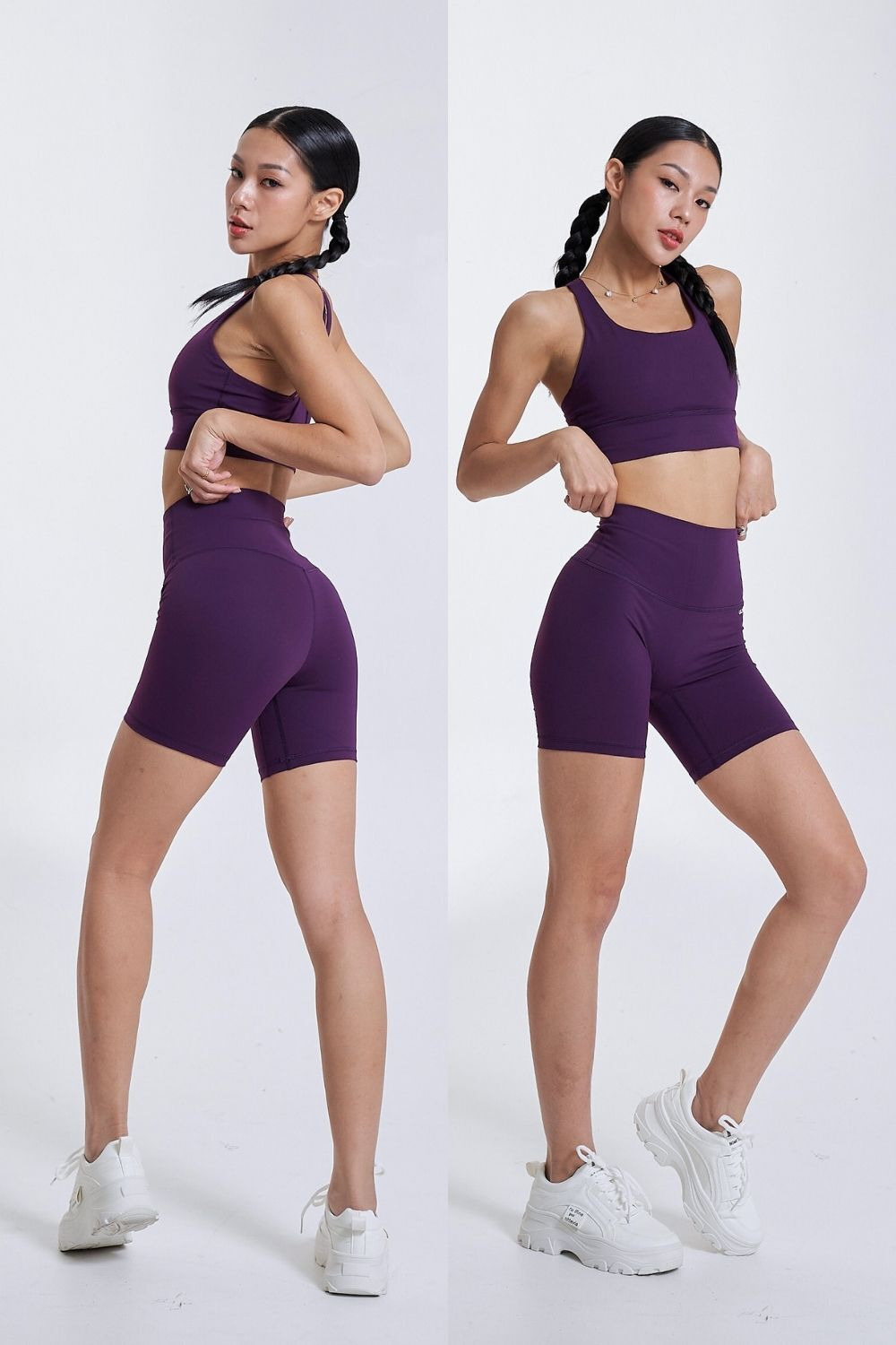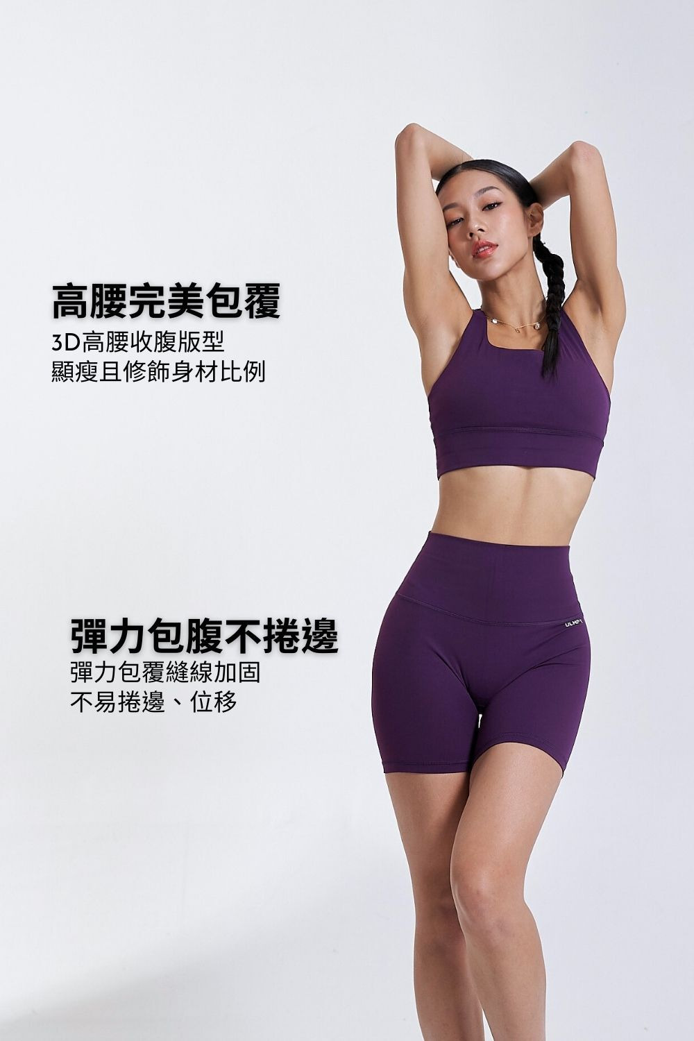 歐美高腰訓練三分短褲|星夜紫